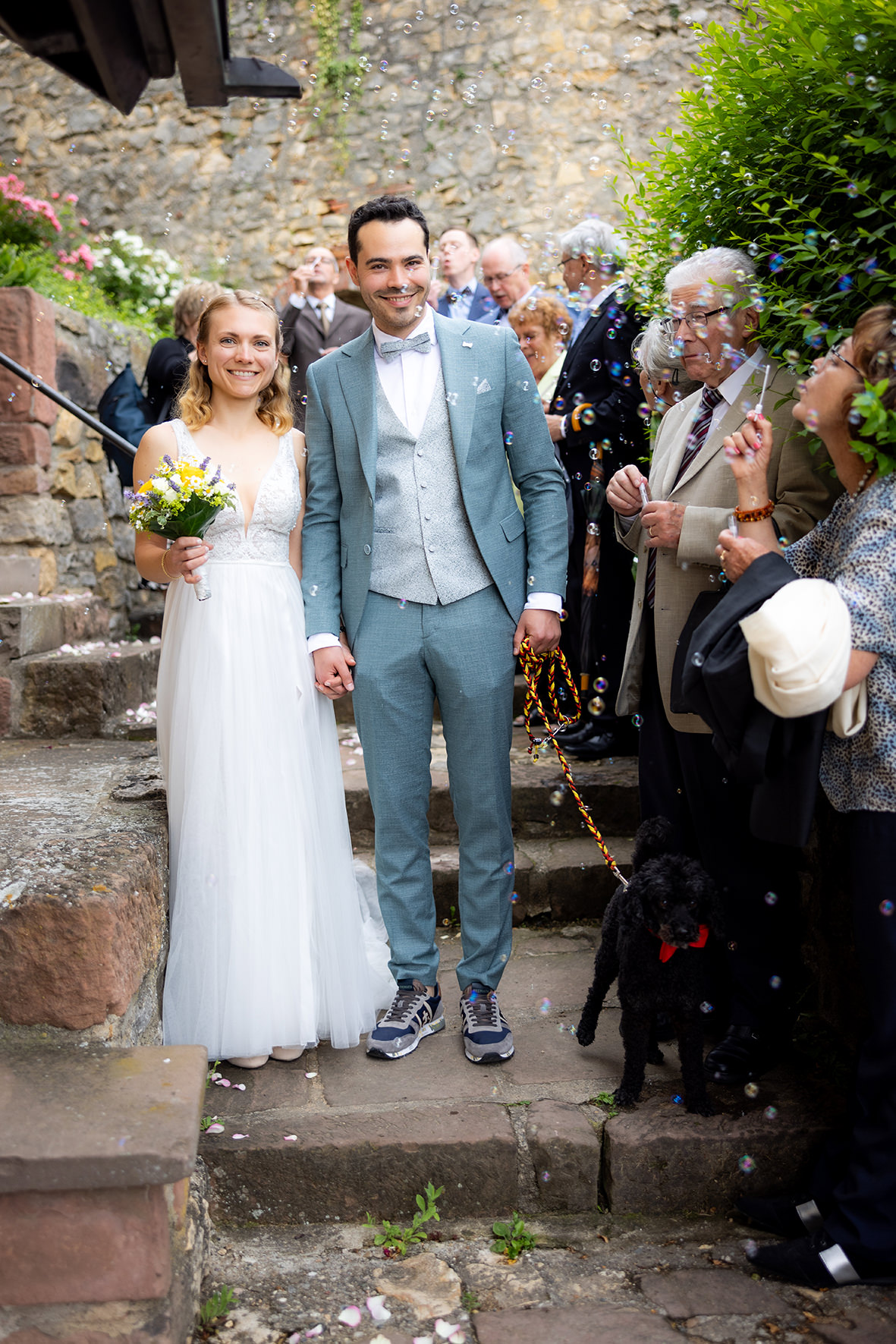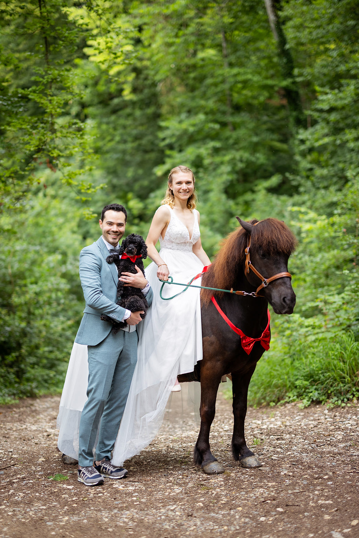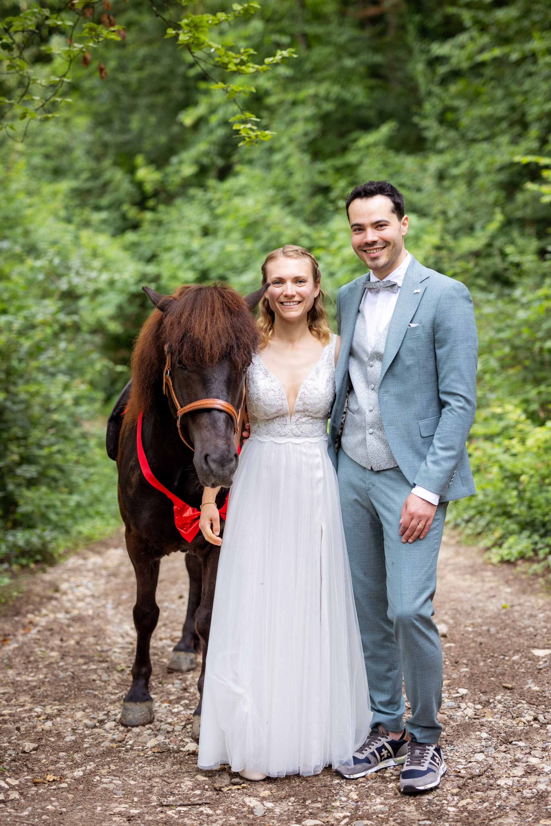 Im Anschluss hatten wir ein besonderes Paarshooting, das die Individualität und den Charme des Paares perfekt widerspiegelte. Wir nutzten die malerischen Ecken der Burg und die ruhige Atmosphäre des umliegenden Waldes, um authentische und romantische Bilder zu schaffen. Ein Highlight war das Shooting mit dem Pony der Braut, das die persönliche Note des Tages unterstrich und wunderschöne, einzigartige Motive entstehen ließ.
